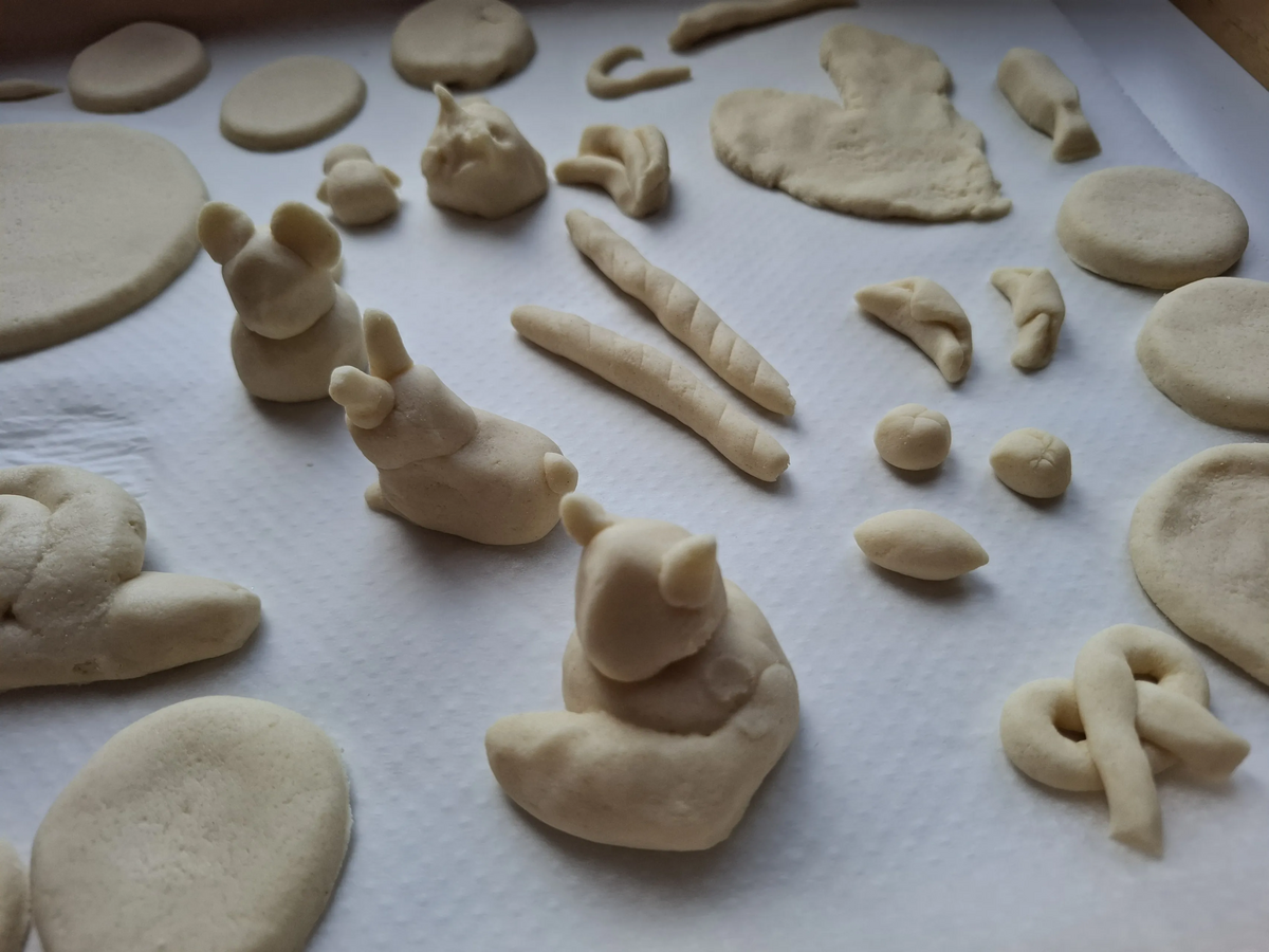 - Lass die Anhänger an der Luft trocknen oder backe sie im Ofen (bei ca. 100 bis 120 °C, je nach Dicke etwa 1 bis 2 Stunden).