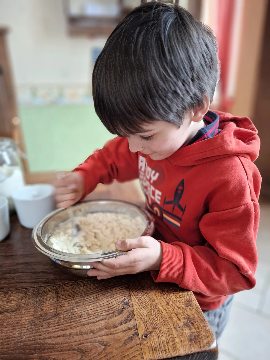 - Knete alle Zutaten zu einem glatten Teig.